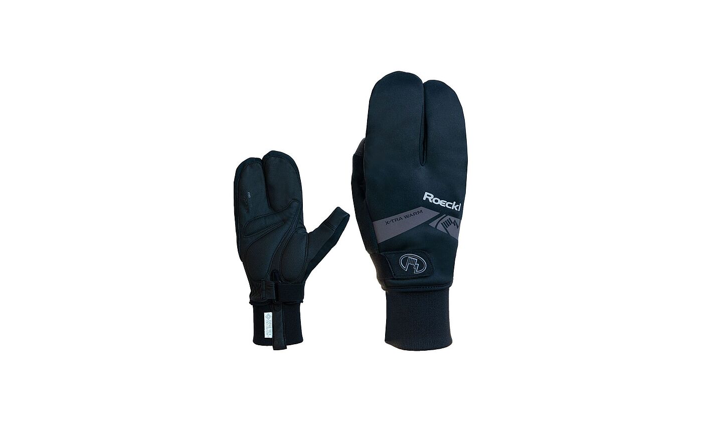 Für den Wintereinsatz gedacht ist der Pearl Izumi AmFIB Gel Glove mit fünf Fingern (79,95 Euro). Besonders warm sind Fäustlinge, die aber beim Fahrrad unpraktisch sind. Daher gibt es als Zwischenlösung Handschuhe, die an Hummerscheren erinnern: Sie umfassen jeweils zwei Finger und den Daumen extra. So lassen sich jeweils zwei Finger unabhängig voneinander bewegen. Ein Beispiel ist der Roeckl Villach Lobster (69,95 Euro).